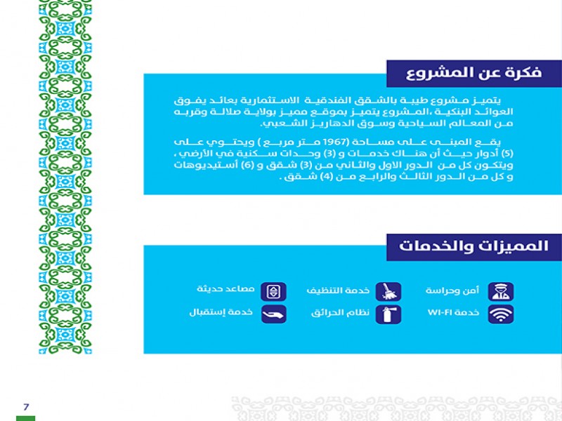 يتميز مشروع طيبة بالشقق الفندقية الاستثمارية بعائد يفوق العوائد البنكية ،المشروع يتميز بموقع مميز بولاية صلالة وقربه من المعالم السياحية وسوق الدهاريز الشعبي.