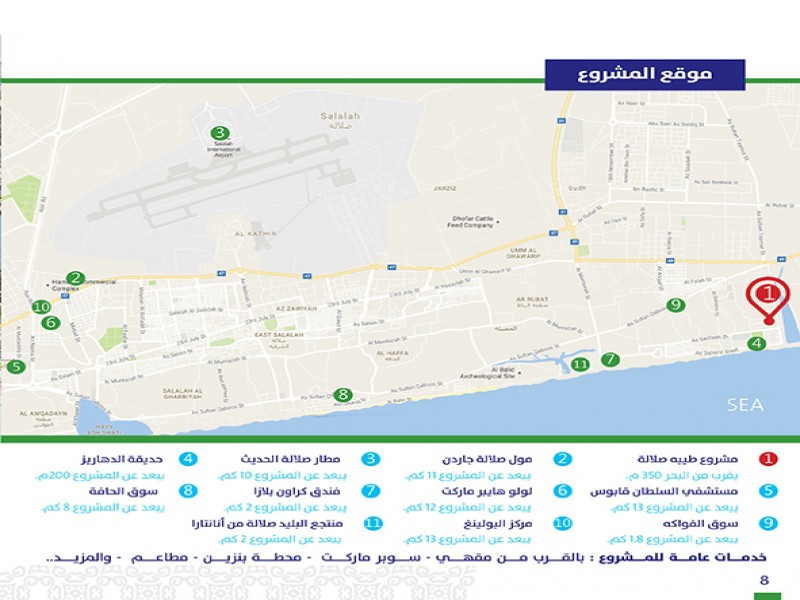 - مطار صلالة الحديث يبعد عن المشروع 10 كم.